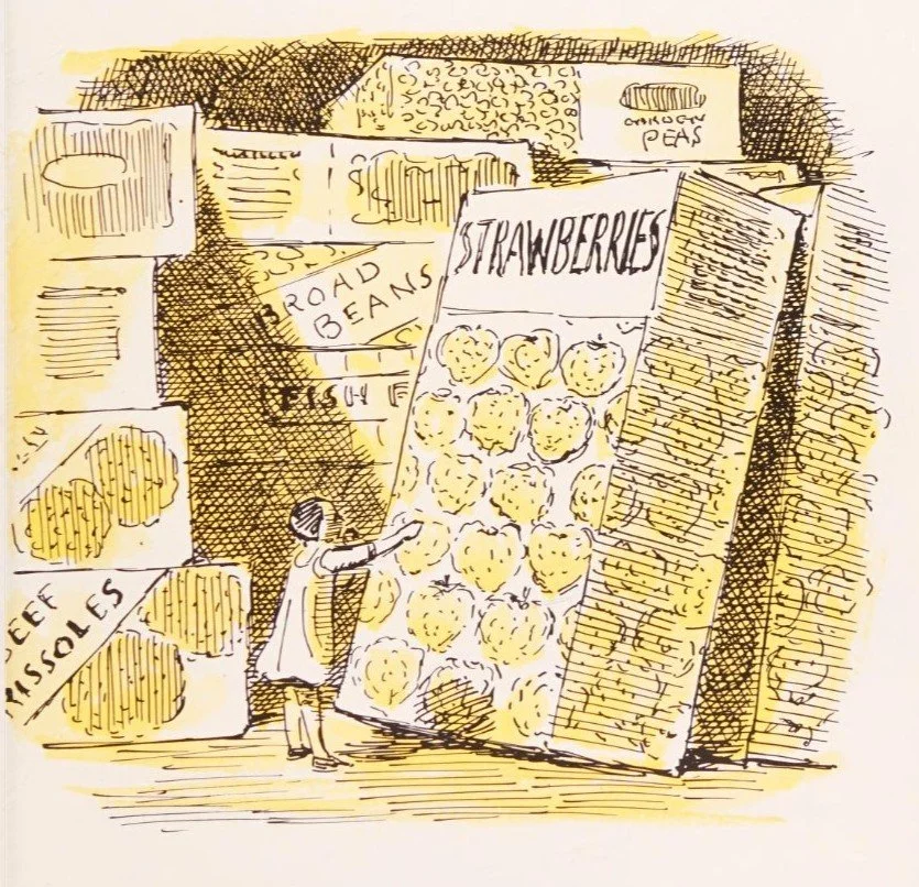 There was once a tiny doll who belonged to a girl who did not care for dolls. One day when the little girl was shopping in the supermarket with her mother, she threw the tiny doll into a deep freeze. So the tiny doll had to stay there, cold and lonely, and frightened by people shuffling all the food round her.
